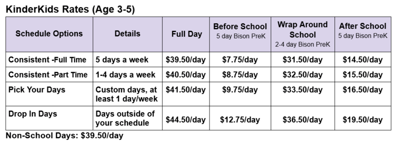KidKare is the BHM schools preschool and school age child care program available at Hanover, Montrose, Northwinds, Parkside and Tatanka schools.